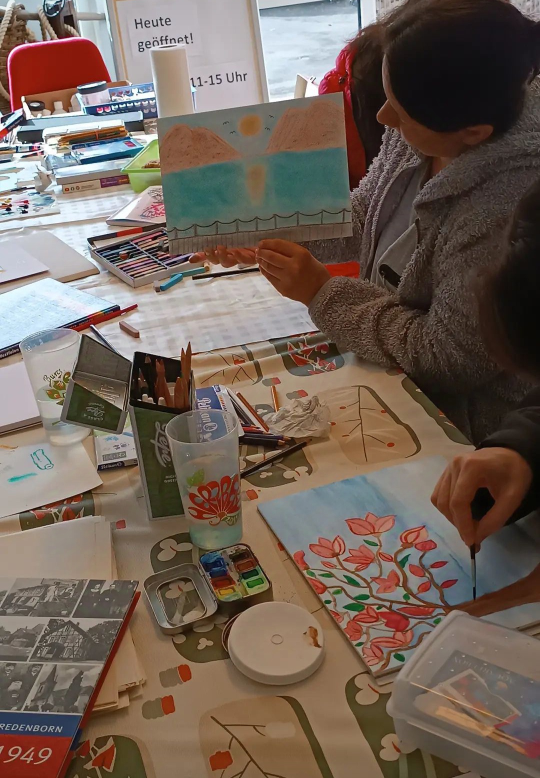 Jeden Samstag findet in der Heimatstube in Bredenborn das Zeichnen mit Christel statt. Jeder ist herzlich willkommen, einfach einmal vorbeizukommen und ein Bild zu malen. Die Adresse der Heimatstube ist Höxterstraße 11 in Bredenborn.